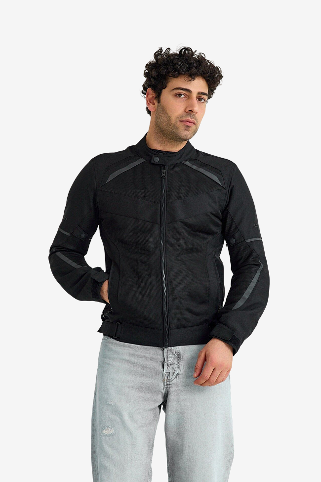 Bu ceketin arkasındaki halka, onu kot pantolonunuza takmanıza olanak tanır ve bu da ceketin kaymasını önler: Motosiklet sürerken artık sırtınız açıkta kalmaz. Ceket korumaları kol uzunluğuna göre ayarlanabilme özelliğine sahip.